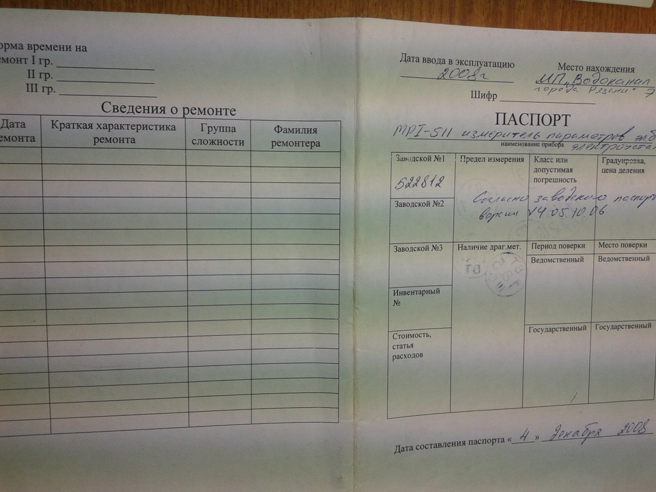 Обычно на предприятии заводится паспорт на каждое средство измерений помимо заводского, например, такого типа