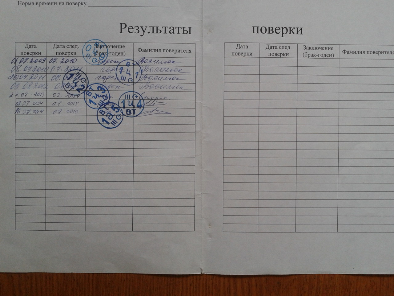 При поверке определяется исправность прибора, целостность корпуса и соответствие результата измерений заявленному классу точности или пределам погрешности. Если все в порядке в паспорте прибора и на самом приборе (если это стрелочный прибор, то клеймо ставится на стекло) ставится клеймо поверителя о дате последней поверки. На клейме как правило указывается квартал и год.